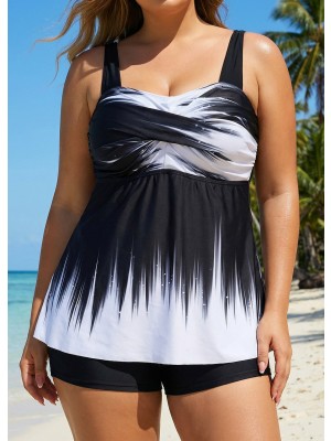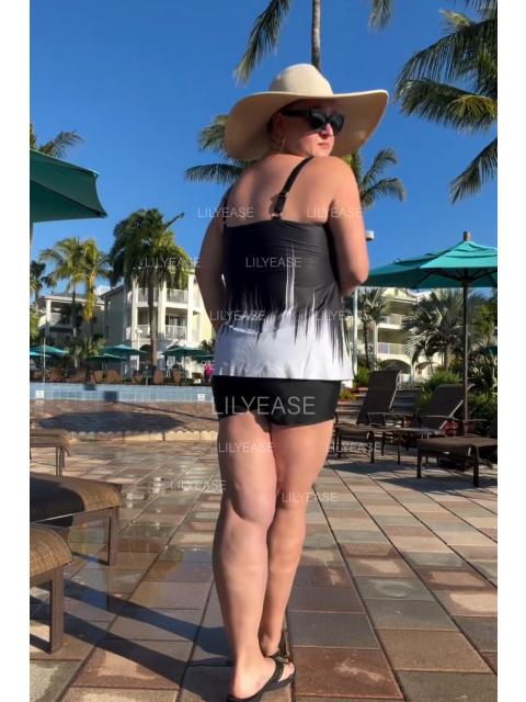 Final Sale LILYEASE ® Black And White Ombre Twisted Front Adjustable Tankini Top