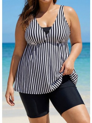 Confident style in this black striped Vneck tankini top featuring removable pads for comfort.A vintage favorite for plus size tankini tops,bathing suits for big busts,and curvy women.Shop your style today.