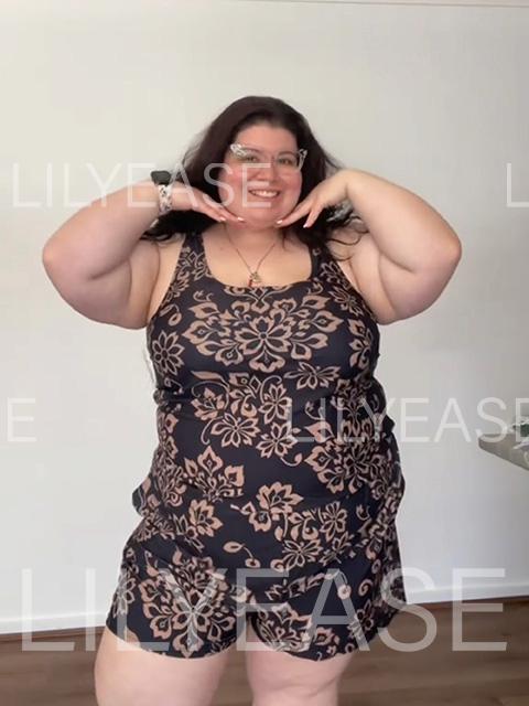 Flash Sale LILYEASE ® Black Print Wide Strap Pocket Plus Size One Piece Swimsuit Swim Romper
