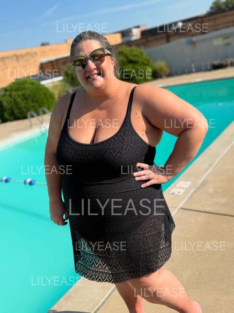 LILYEASE ® Black Scoopneck Crochet Tummy Control One Piece Swimdress