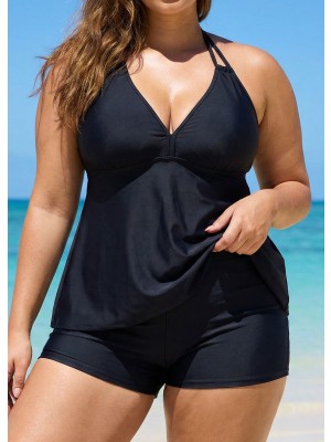 Ready for classic elegance This black Vneck sleeveless tankini top features a sophisticated doublestrap halter design with a charming knot,removable pads,and adjustable straps.Ideal for best swimsuits for big busts and swimming costumes for plus size ladies.