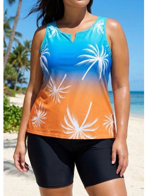 Grab this summer essential Plus Size Black White Leaf Pattern V Neck Sleeveless Modest Tankini Top! Its flattering cut and sleeveless design highlight your curves perfectly,while the trendy leaf print catches eyes instantly.This plus size tankini top is flying off shelves get yours now!