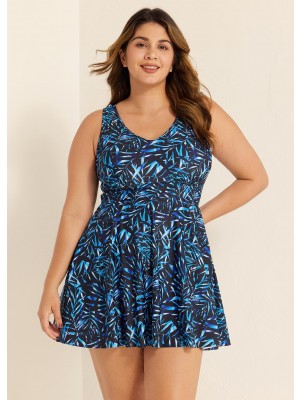 Plus Size Purple Floral Modest Swimsuit And Swimwear Swimdress Set
