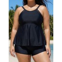 Black Scoop Neck Cutout Edge Plus Size Modest Tankini Swimsuit Top