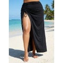 Black Drawstring Side Slit Coverup Skirt