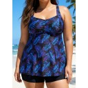 Purple Plants Print Square Neck Flowy Modest Plus Size Tankini Swimsuit Top