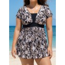 Black Floral Vintage Curvy Swimwear Bathing Suits Swimdress Top