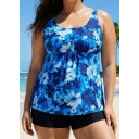 Curvy Blue Floral Modest Retro Swimsuit And Swimwear Tankini Top