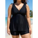 Black Wide Straps Wrap Curvy Two Piece Bathing Suits Tankini Top