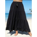 Curvy Black Drawstring Casual Beach Cover Up Dress
