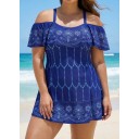 Plus Size Navy Off The Shoulder Line Flowers Women One Piece Swimdress