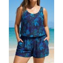 Curvy Navy Floral Vintage Wide Straps Pocket Women's Swimsuit One Piece Swim Romper