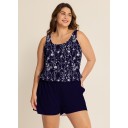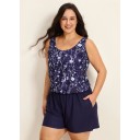 Curvy Purple Floral Modest Wide Straps Pocket Women's Swimsuit One Piece Swim Romper