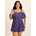 Purple Floral Off The Shoulder Flattering Plus Size Women's Swimsuit One Piece Swim Romper