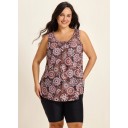 Brown Ethnic Print Vintage Wide Strap Loose Fit Plus Size Women's Swimsuit Long Tankini Top