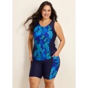 Tropical Palm Leaf Scoop Neck Vintage Plus Size Women's Swimsuit Two Piece Tankini Set