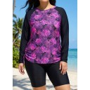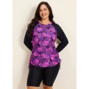 Purle Leaf High Neck Upf50+ Long Sleeves Side Drawstring Curvy Swimsuit Shirt Tankini Top