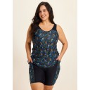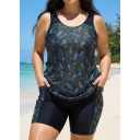 Black Floral Scoop Neck Sporty Built In Bra Drawstring Curvy Women's Swimsuit Tankini Set