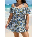 Curvy Navy Floral Off The Shoulder Flattering Women's Swimsuit One Piece Swimdress