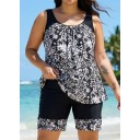 Black White Geometric Scoop Neck Flattering Padded Curvy Women's Swimsuit Tankini Set