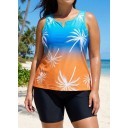 Colorful Plants Print V Neck Casual Sleeveless Tankini Top