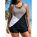 Lace Patchwork Drawstring Black Modest Tankini Top