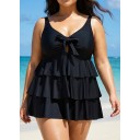Black Knotted Front Ruffle Tiered Elegant Tankini Top